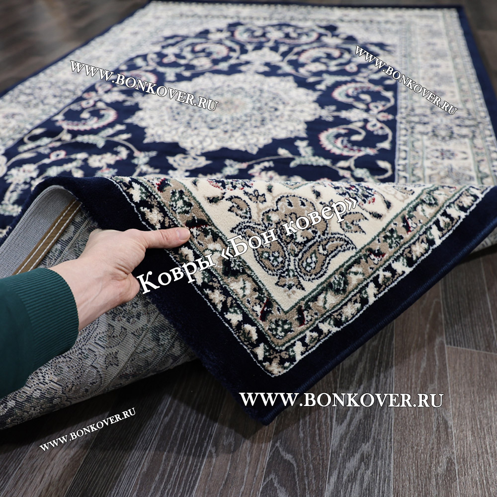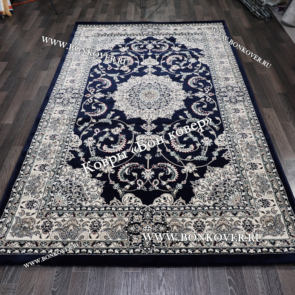 Шикарный Ковер Для Гостиной Дизайн 30837 Темно-Синий наполняет интерьер жилого пространства теплом и уютом, гармонично сочетает в себе изящество и красоту. Он изготовлен из экологически чистого сырья, комфортный и долговечный.