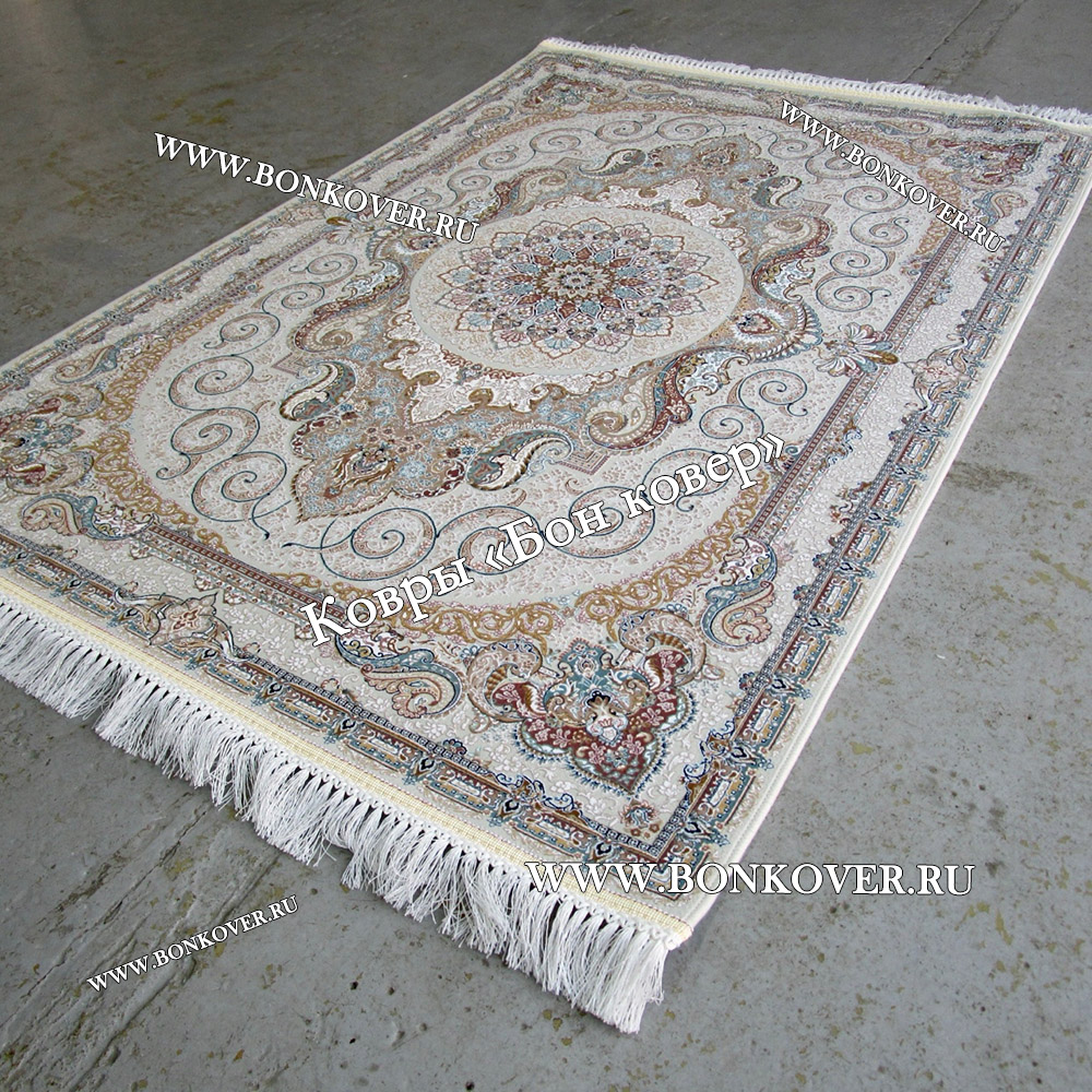 Долго выбирала, остановилась на данной модели. Ковер понравился, очень красивый праздничный, нежной расцветки сливочно кремовой. Ковёр средний плотности, к этому я была готова, т. к. вес ковра 9 кг, ковры аналогичных размеров более плотной набивки весят 12 кг. Слегка хамелионит, в дневное время цвет..